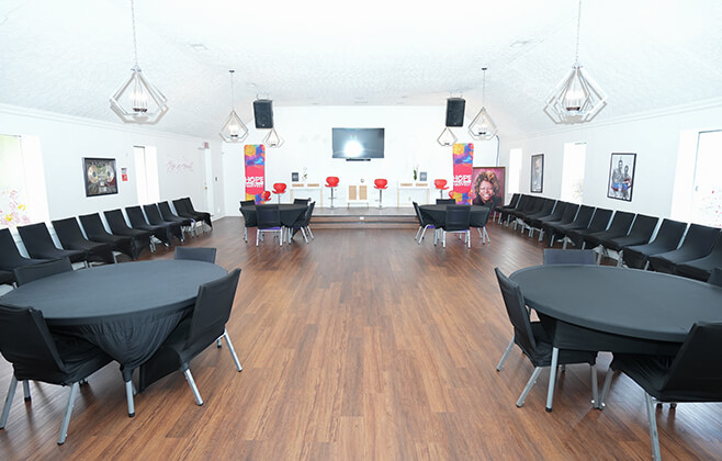 Our spacious, flexible rental space is ideal for a wide range of gatherings, from intimate celebrations to large-scale productions. Whether you're planning a joyful birthday party, a beautiful wedding and reception, or a professional conference, our venue can accommodate your needs with style and ease.