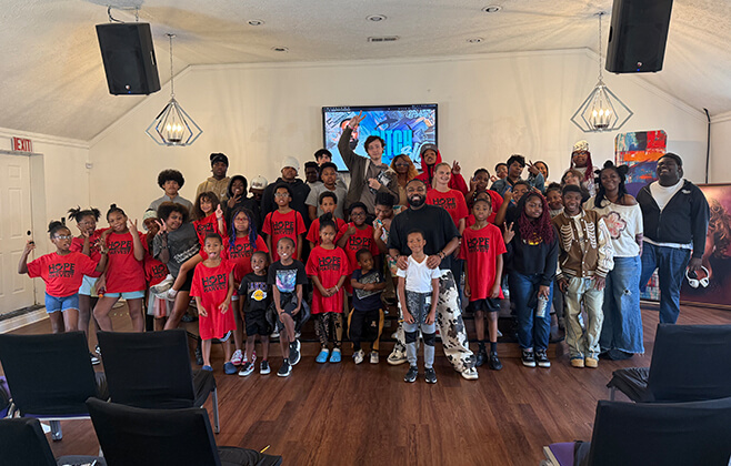 Our Hope for the Holidays initiative supports families in need through two impactful programs. The Annual Thanksgiving Giveback Weekend serves over 500 children and families living in shelters, group homes, or facing hardship. It begins with a community event featuring music and entertainment and concludes with a meal distribution and hygiene kit giveaway.
